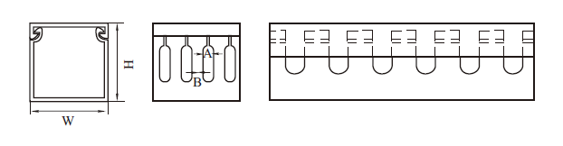 | 编 号 | 高×宽 | 厚度 | 孔宽(A) | 孔距(B) | 电 线 容 量 |